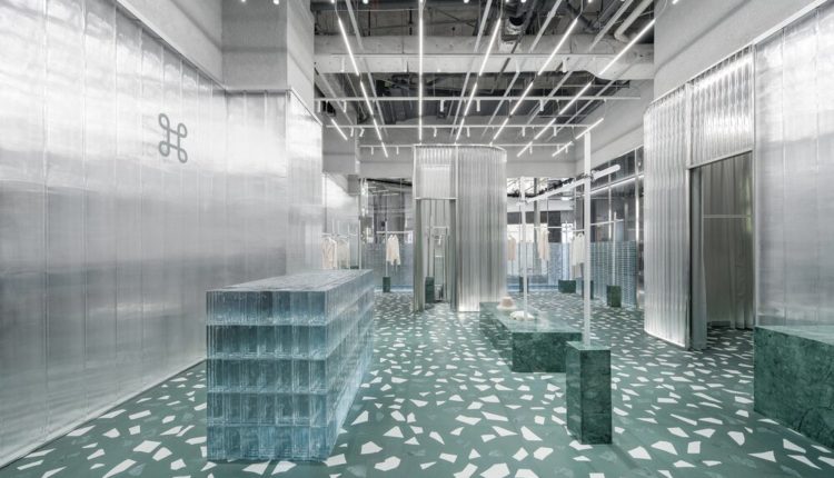 To all terrazzo lovers out there, here you go! 😛 Studio 10, designed this store in China for the minimalist womenswear brand geijoeng . Staying authentic and on-brand, the shop follows the same minimalistic philosophy. One can see various levels of transparency through the use of clear wavy polycarbonate panels as well as glass bricks. The green terrazzo floor with large white aggregates is used as the base for the project creating a joint surface for the whole shop. By browsing through various terrazzo projects, it’s clear that the terrazzo trend has been here for a while, and it’s been continuously used in multiple projects. Still, I can’t help to wonder when the people’s interest will switch again and terrazzo use decline.