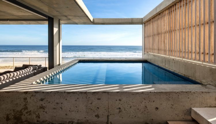 While scrolling through the internet, I stumbled upon this elegant villa by the beach by Gavin Maddock Design Studio in Cape Town, an ideal beach house for a weekend getaway! The raw concrete materiality blends with the natural landscape and event thought I like every inch of this house my favorite area is the pool. Cleverly elevated and positioned directly looking to the sea, I could spend the whole day chilling here. The bedrooms, as well as all the common areas, follow a minimal concept with grey tones, and wooden textures with amazing framed views towards the seafront.